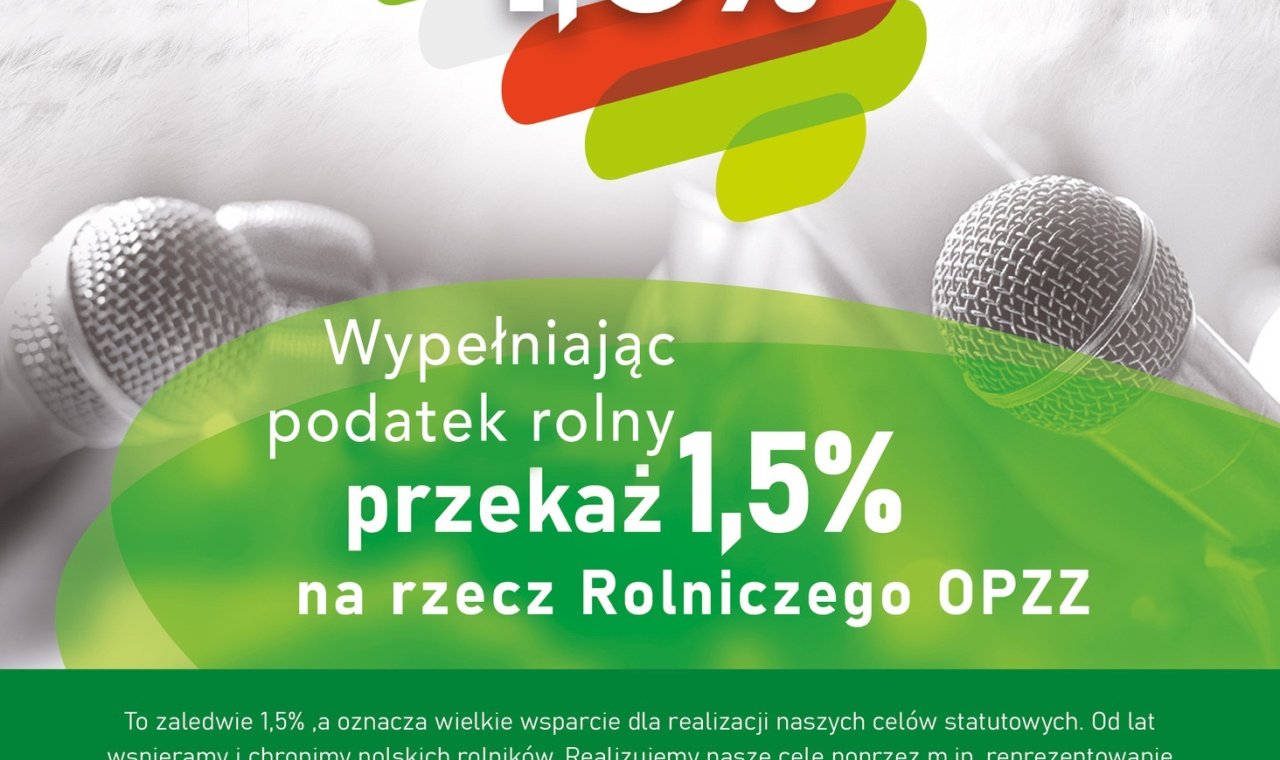 20-10-2025 09:02 Przekaż 1,5% podatku na rzecz Rolniczego OPZZ – wspieraj polskich rolników! 🌾 Wypełniając podatek rolny, można w prosty sposób wesprzeć działalność Rolniczego Ogólnopolskiego Porozumienia Związków Zawodowych (Rolniczy OPZZ), przekazując 1,5% podatku na realizację celów statutowych organizacji. To zaledwie niewielka część podatku, a oznacza ogromne wsparcie dla działań, które od lat służą polskim rolnikom. Rolniczy OPZZ reprezentuje i chroni interesy rolników wobec władz państwowych, samorządowych i gospodarczych, angażując się również w prace doradcze i współpracując z Ministerstwem Rolnictwa i Rozwoju Wsi. Dzięki działalności związku udało się wprowadzić m.in.: program „Locha plus” oraz ustawę umożliwiającą budowę magazynów bez pozwolenia, inicjatywy na rzecz oddłużenia rolnictwa, reformę gospodarki łowieckiej, niezbędną do zwalczania ASF, ustawę o obszarach wiejskich, pozwalającą na swobodne prowadzenie inwestycji rolniczych, działania przeciwko zakazowi uboju rytualnego w Polsce, oraz starania o wprowadzenie długoterminowych form kredytowania rolnictwa (nawet do 30 lat). Rolniczy OPZZ to głos polskiej wsi i realne wsparcie dla rolników. Dlatego zachęcamy – wypełniając swoje zeznanie podatkowe, przekaż 1,5% na rzecz Rolniczego OPZZ. 📌 KRS: 0000278529 Każdy procent ma znaczenie