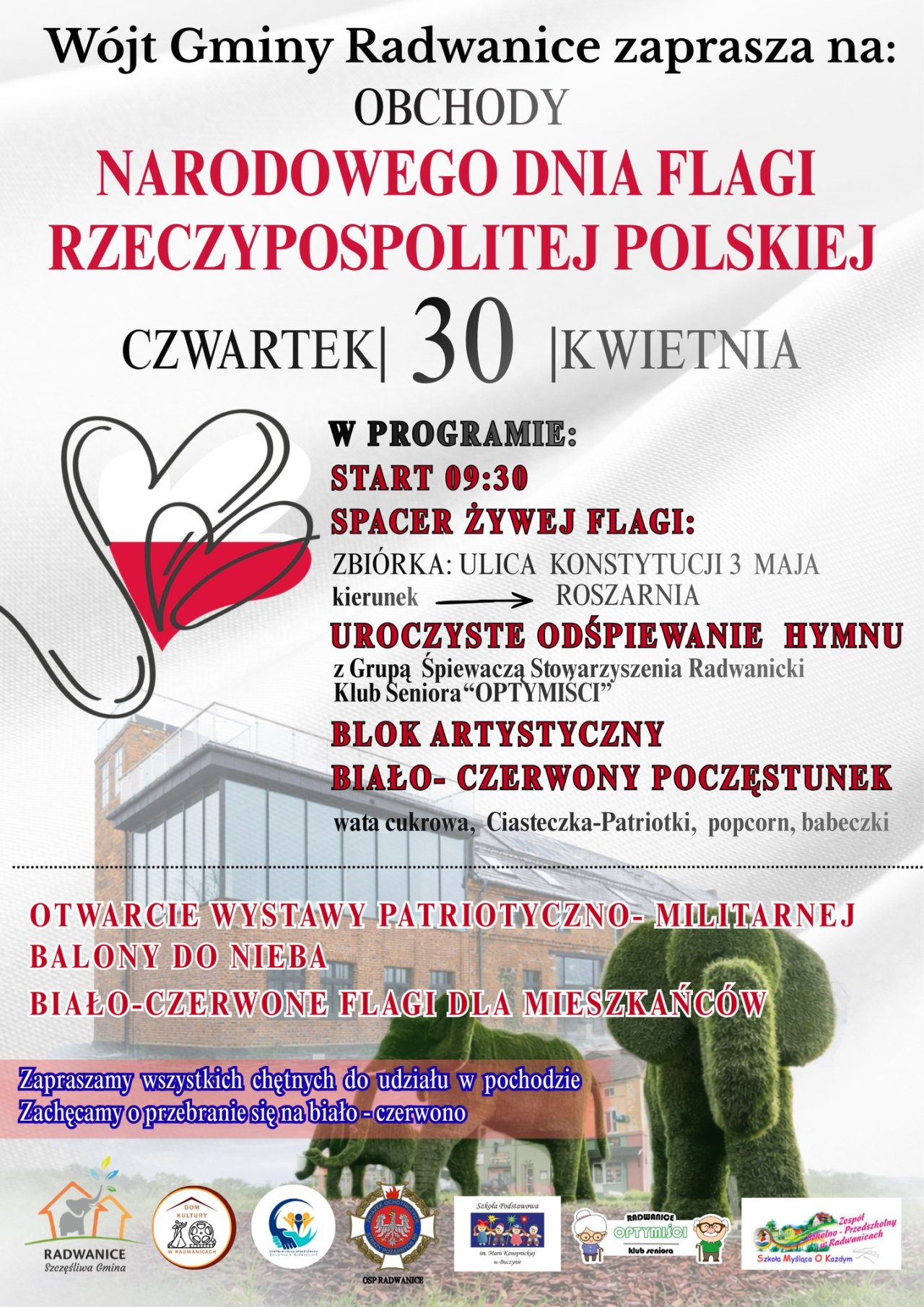 28-04-2026 11:25 Zapraszamy do wspólnego świętowania już 30 kwietnia! Zachęcamy wszystkich mieszkańców do przebrania się w biało-czerwone barwy i wspólnego uczczenia tego wyjątkowego dnia Zbiórka: godz. 9:30 ul. Konstytucji 3 Maja Po zbiórce wyruszymy spacerem na plac przy Centrum Usług Społecznych „Roszarnia” w Radwanicach Na miejscu: wspólne odśpiewanie hymnu z Grupą Śpiewaczą „Stowarzyszenie Radwanicki Klub Seniora "Optymiści", blok artystyczny w wykonaniu uczniów Zespół Szkolno-Przedszkolny w Radwanicach, otwarcie wystawy patriotyczno - militarnej w budynku "Centrum Usług Społecznych Roszarnia w Radwanicach, słodki poczęstunek, flagi gminne i narodowe dla mieszkańców Gminy Radwanice biało-czerwone balony do nieba. Do zobaczenia!