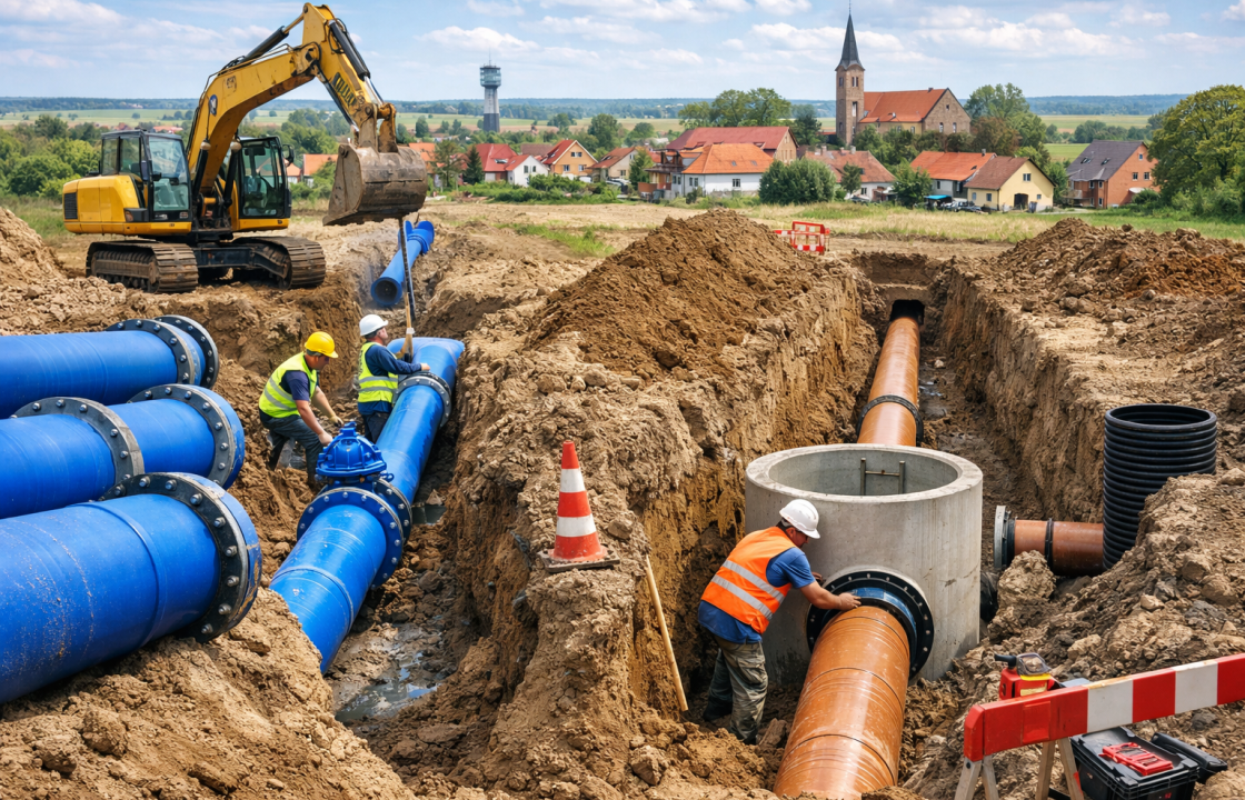 Trwają prace przy budowie sieci wodociągowej w Łagoszowie Wielkim
