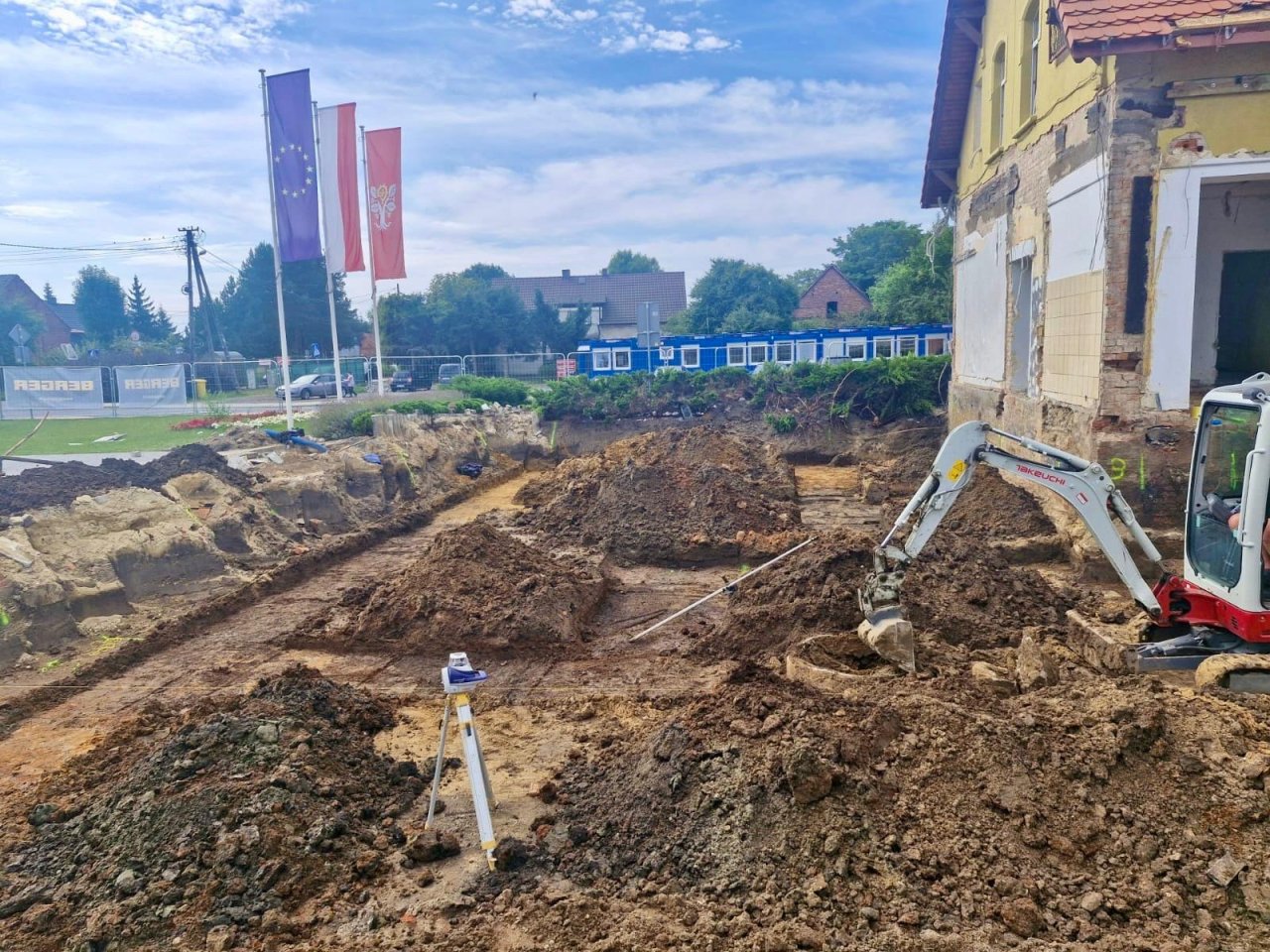 02-09-2025 01:48 Budowa nowego Urzędu Gminy - Inwestycja ruszyła Sierpień tego roku zapisał się w historii naszej gminy jako początek dużej inwestycji – przebudowy i rozbudowy Urzędu Gminy Radwanice, dzięki której powstanie nowoczesny, ekologiczny i bardziej przyjazny dla mieszkańców obiekt. W połowie sierpnia br. w Gminie Radwanice miało miejsce wydarzenie o historycznym znaczeniu. Rozpoczęto rozbiórkę części budynku Urzędu Gminy Radwanice, co stanowi pierwszy etap dużej inwestycji obejmującej rozbudowę, przebudowę, termomodernizację oraz wymianę źródła ciepła obiektu, wraz z kompleksowym zagospodarowaniem terenu. Z przyjemnością dzielimy się z Państwem dokumentacją fotograficzną z tego przełomowego momentu. Wykonawcą zadania, wyłonionym w drodze przetargu, jest firma BergerBau. Realizacja inwestycji potrwa około 14 miesięcy. Jednocześnie informujemy, że od 4 sierpnia br. zapraszamy Państwa do tymczasowej siedziby urzędu, mieszczącej się w kontenerach gospodarczych naprzeciwko dotychczasowego budynku – po drugiej stronie ul. Przemysłowej.