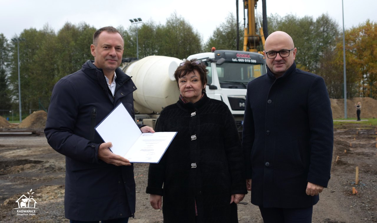 03-11-2025 12:25 Kolejne środki na budowę kompleksów „Olimpia” w Gminie Radwanice W Gminie Radwanice realizowany jest ważny projekt sportowy – budowa dwóch nowoczesnych kompleksów sportowo-rekreacyjnych „Olimpia” w miejscowościach Buczyna i Radwanice. Inwestycja zyskuje coraz większe wsparcie finansowe ze środków rządowych. We wrześniu gmina otrzymała pierwszą część dofinansowania, a wtedy inwestycję osobiście odwiedził Wiceminister Ministerstwa Sportu i Turytsyki Pan Piotr Borys. Dziś ponownie przyjechał do Buczyny, by zobaczyć postęp prac oraz przekazać kolejne środki finansowe. – Dokładamy dodatkowe pieniądze i mamy kolejną dobrą informację dla Gminy Radwanice, w której powstają dwie „Olimpie” – powiedział minister. – Buczyna otrzyma dodatkowe 1 328 000,00 zł, a Radwanice 603 000,00 zł. Wcześniej przekazaliśmy już 2 200 000 zł. Po ostatnim roku podnieśliśmy poziom dofinansowania programu „Olimpia” do 70%, co daje możliwość zwiększenia środków w przypadku wolnych funduszy. Cieszymy się, że możemy przekazać kolejne pieniądze dla waszej gminy. Trzymamy kciuki, aby udało się je wykorzystać jak najszybciej i zakończyć inwestycję jeszcze w tym roku. Minister dodał również z uśmiechem, że liczy na to, iż w przyszłym roku uda się zorganizować w gminie mecz młodzieży – taki, o jakim rozmawiano już we wrześniu. – W Buczynie rozpoczęły się już prace fundamentowe, a niebawem pojawi się konstrukcja drewniana. W Radwanicach prace ruszą jeszcze w tym tygodniu – poinformował wójt gminy Radwanice Pan Paweł Piwko. – Wszyscy dokładamy wszelkich starań, by do końca roku zrealizować co najmniej 70% zadania. Mam nadzieję, że firma wykonawcza stanie na wysokości zadania, a mieszkańcy już wkrótce będą mogli cieszyć się nowymi obiektami sportowymi. Na zakończenie wójt wyraził wdzięczność za wsparcie finansowe: – Chcielibyśmy serdecznie podziękować Panu Ministrowi Piotrowi Borysowi za zaangażowanie i przekazanie aż 70% dofinansowania. Dzięki temu inwestycje sportowe w naszej gminie mogą być realizowane szybciej i w większym zakresie. Budowa kompleksów „Olimpia” to kolejny krok w rozwoju infrastruktury sportowej Gminy Radwanice, który pozwoli na jeszcze aktywniejsze spędzanie czasu przez dzieci, młodzież i dorosłych mieszkańców.