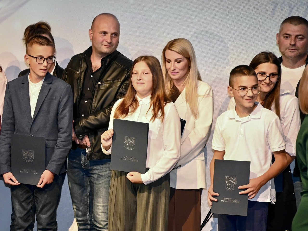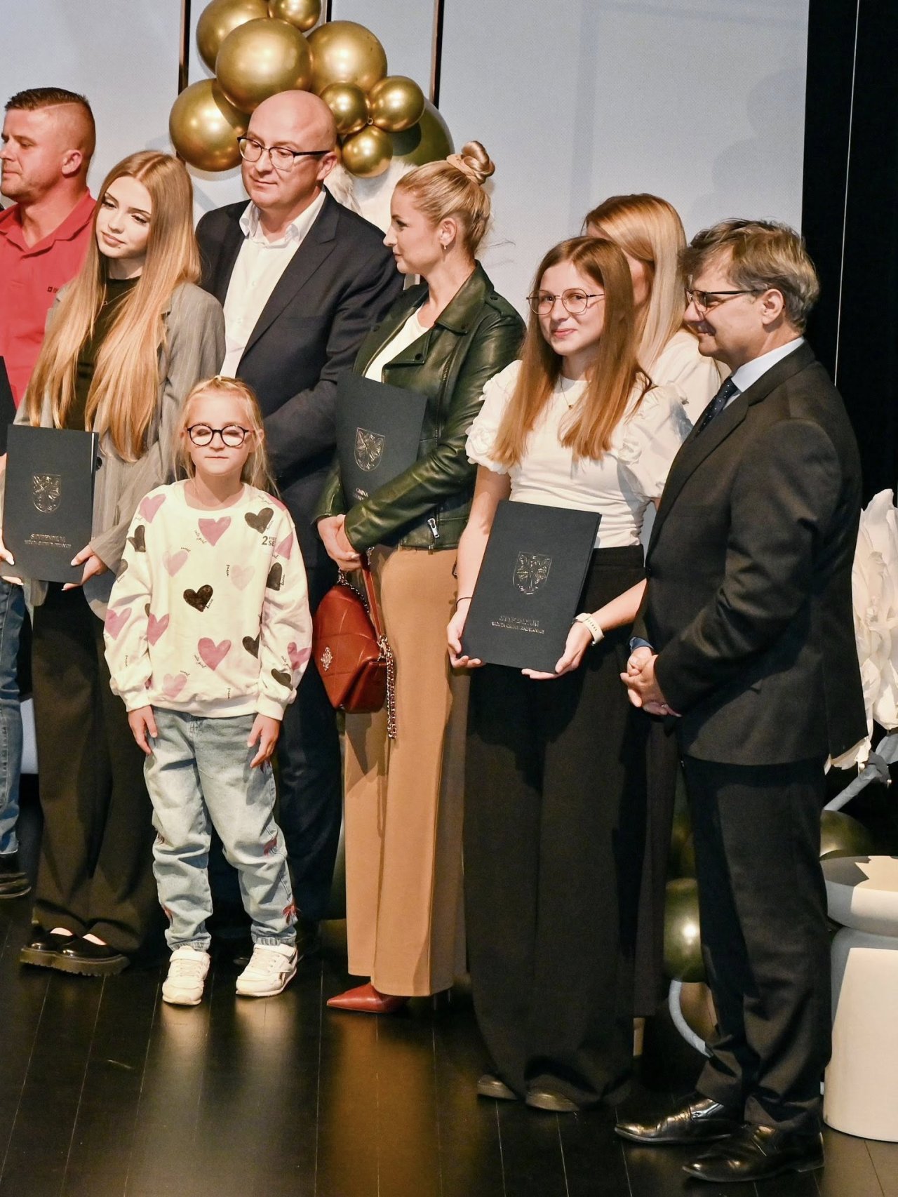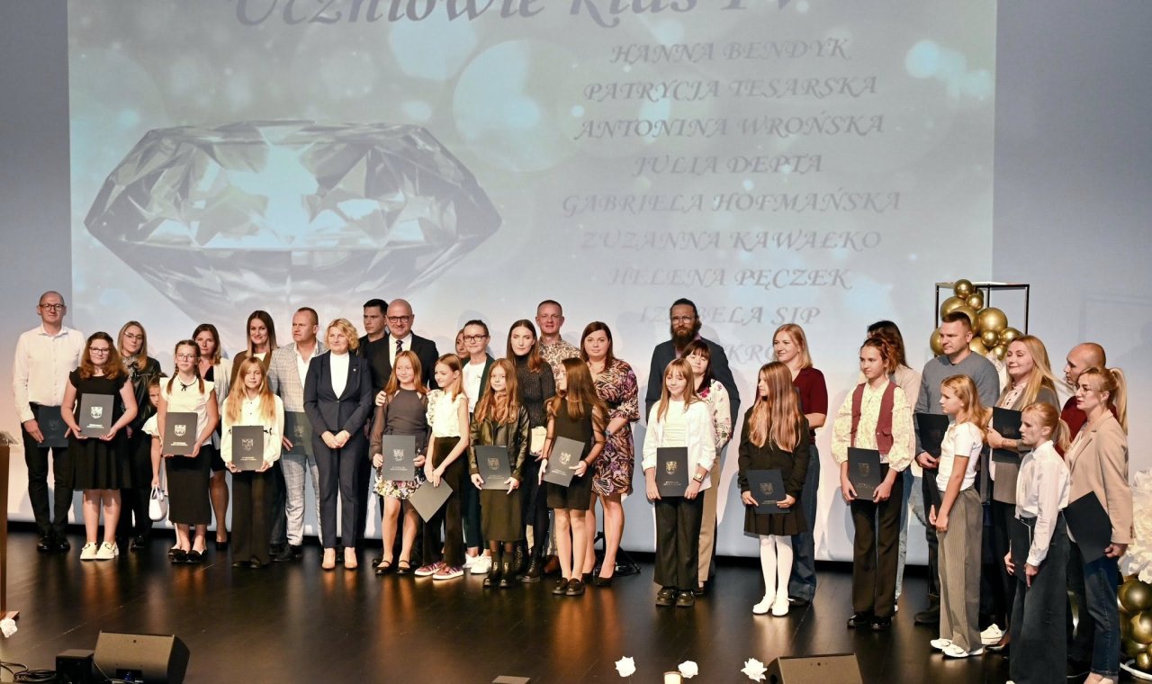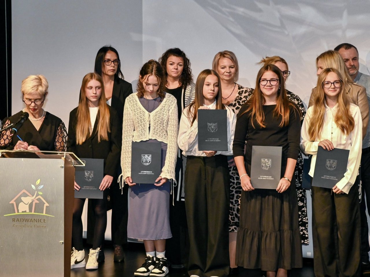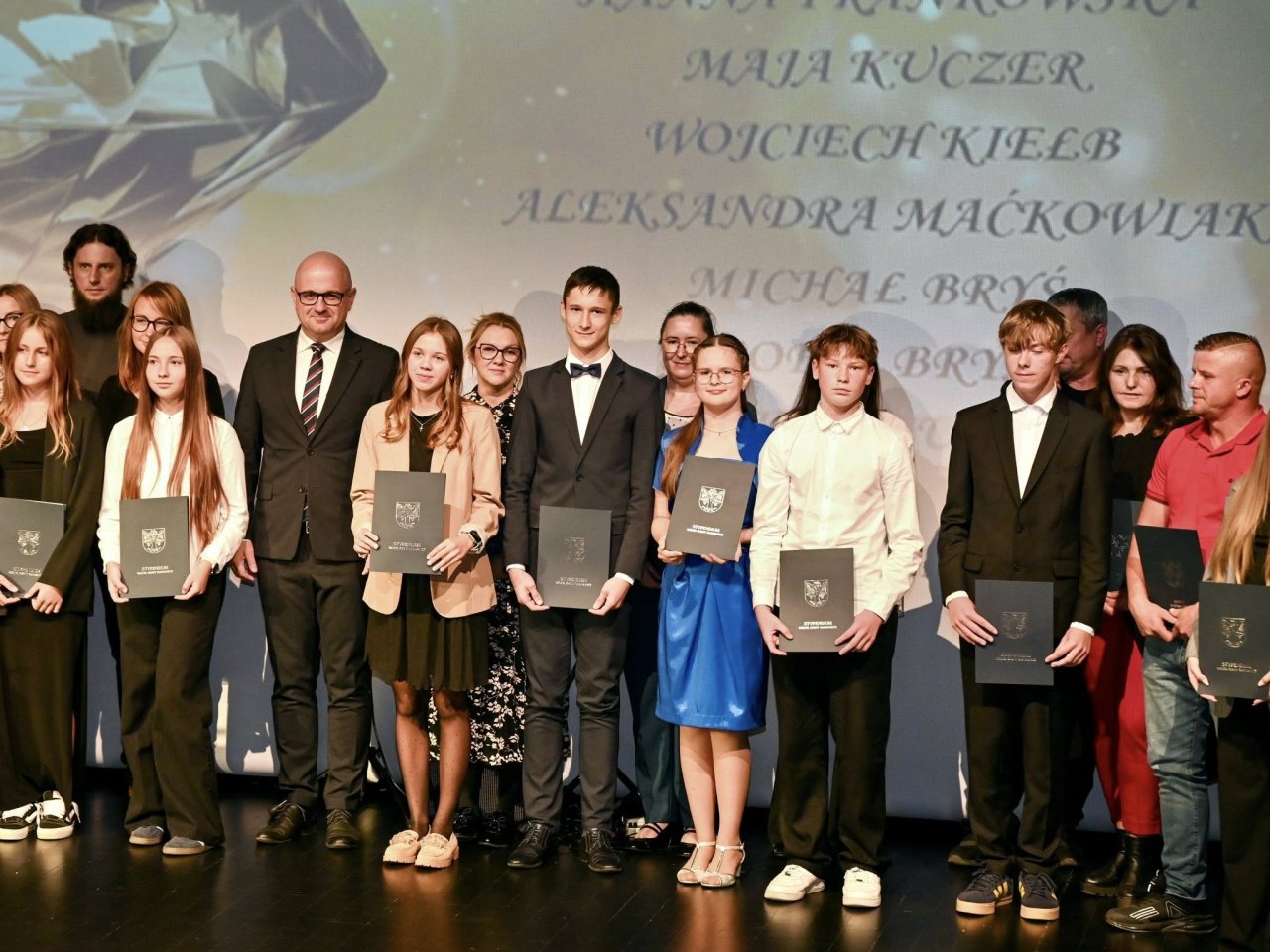29-09-2025 11:29 Diamenty Gminy Radwanice: Gala Stypendialna 2024/2025 26 września w sali widowiskowej Domu Kultury w Radwanicach odbyła się Gala Stypendialna 2024/2025. To wyjątkowe wydarzenie corocznie honoruje młodych mieszkańców gminy Radwanice, którzy swoją pasją, talentem i zaangażowaniem inspirują całą lokalną społeczność. Tegoroczna gala rozpoczęła się występem muzycznym, który wprowadził wszystkich obecnych w podniosły nastrój. W imieniu gospodarza uroczystości, Wójta Pawła Piwko, powitano stypendystów wraz z rodzicami oraz licznie zgromadzonych gości. „Diament nie świeci od razu – podobnie jak talent, który dopiero dzięki wysiłkowi i pasji nabiera prawdziwego blasku” – tymi słowami organizatorzy przypomnieli wszystkim zgromadzonym, że dzisiejsza uroczystość jest świętem młodych „diamentów”, które rozświetlają przyszłość Gminy Radwanice. Najzdolniejsi uczniowie szkół podstawowych Wręczanie stypendiów rozpoczęto od uczniów klas IV–VI, którzy w mijającym roku szkolnym wyróżnili się wybitnymi osiągnięciami: Klasy IV: Hanna Bendyk, Patrycja Tesarska, Antonina Wrońska, Julia Depta, Gabriela Hofmańska, Zuzanna Kawałko, Helena Pęczek, Izabela Sip, Iga Skrok, Nela Bajda, Klaudia Dziekan, Nina Olewnik Klasy V: Hanna Banaszak, Amelia Łojek, Hanna Sawicka, Oliwier Szozda, Anna Maćkowiak, Julia Frankowska, Lena Górkiewicz, Gabriela Rachwalska, Tytus Sudolski, Pola Trygar, Natalia Nikola Sip, Wilhelm Dąbrowski, Miłosz Przybyś, Zuzanna Żyta Klasy VI–VIII: Alicja Gregorczyk, Adam Słoma, Aleksandra Kosidło, Jakub Loreth, Hanna Frankowska, Maja Kuczer, Wojciech Kiełb, Aleksandra Maćkowiak, Oskar Kulig, Piotr Długosz, Marika Dereń, Aurelia Rachwalska Stypendyści szkół ponadpodstawowych Równie wybitne osiągnięcia odnotowali uczniowie szkół średnich, którzy swoją wiedzą i pasją udowadniają, że ciężka praca przynosi spektakularne efekty: Aleksander Chrobak, Dagmara Janczak, Wanessa Kałuża, Marcin Panter, Magdalena Piotrowska, Maria Zawis, Franciszek Kucharski, Laura Tarkowska, Weronika Miszkiewicz, Natalia Zielińska, Karol Zawis, Oliwia Chodak, Hanna Kałużka Talent w każdej formie Gala była także okazją, by docenić młode talenty artystyczne. Julia Depta zachwyciła publiczność wokalnym wykonaniem utworów w repertuarze Kajah i Wiki Gabor oraz Natalii Nykiel, a Tymon Szozda wykazał się mistrzostwem w grze na fortepianie, pokazując, że pasja w połączeniu z ciężką pracą prowadzi do prawdziwego mistrzostwa. Młodzi mistrzowie sportu Nie zabrakło wyróżnień dla młodych sportowców, którzy w minionym roku osiągnęli wyjątkowe wyniki w swoich dyscyplinach: Jakub Loreth, Szymon Artur Chrostowski, Jakub Kwoka, Jakub Andrzejewski, Hubert Jurczyk, Zofia Olejnik, Antonina Wrońska, Wanessa Kałuża, Oskar Kulig, Kornelia Szylko Primus Inter Pares Najwyższe wyróżnienie, tytuł Primus Inter Pares, przypadło dwóm absolwentom, którzy swoją wszechstronnością, zaangażowaniem społecznym i talentem artystycznym wyznaczają standardy dla rówieśników: Marika Dereń – absolwentka Szkoły Podstawowej w Buczynie, laureatka licznych konkursów plastycznych i wiedzy biznesowej. Oskar Kulig – absolwent Zespołu Szkolno–Przedszkolnego w Radwanicach, wybitny sportowiec i aktywny wolontariusz, odnoszący sukcesy także w konkursach regionalnych. Gala pokazała, że pasja, talent i ciężka praca młodych ludzi to prawdziwe diamenty, które rozświetlają nie tylko szkolną codzienność, ale również przyszłość całej społeczności Gminy Radwanice.