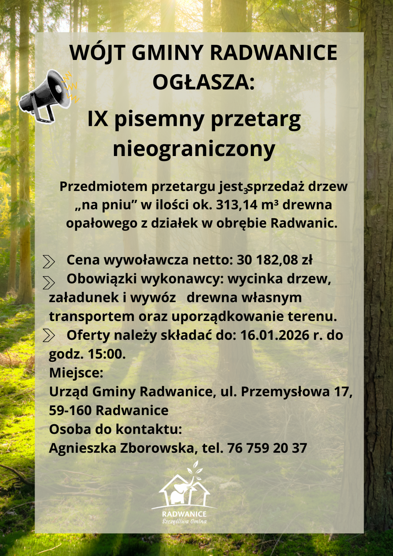 IX PISEMNY PRZETARG NIEOGRANICZONY NA SPRZEDAŻ DREWNA NA PNIU
